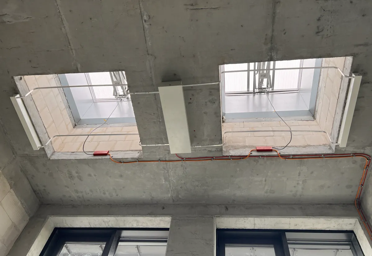 W nowoczesnym biurowcu KTW II w Katowicach odpowiadaliśmy za wykonanie kompletnego okablowania oraz orurowania systemu oddymiania ze zmiennym nawiewem mechanicznym. Nasze prace stanowiły kluczowy etap przygotowania instalacji odpowiadającej za bezpieczeństwo użytkowników budynku i zgodność z wymaganiami przeciwpożarowymi.